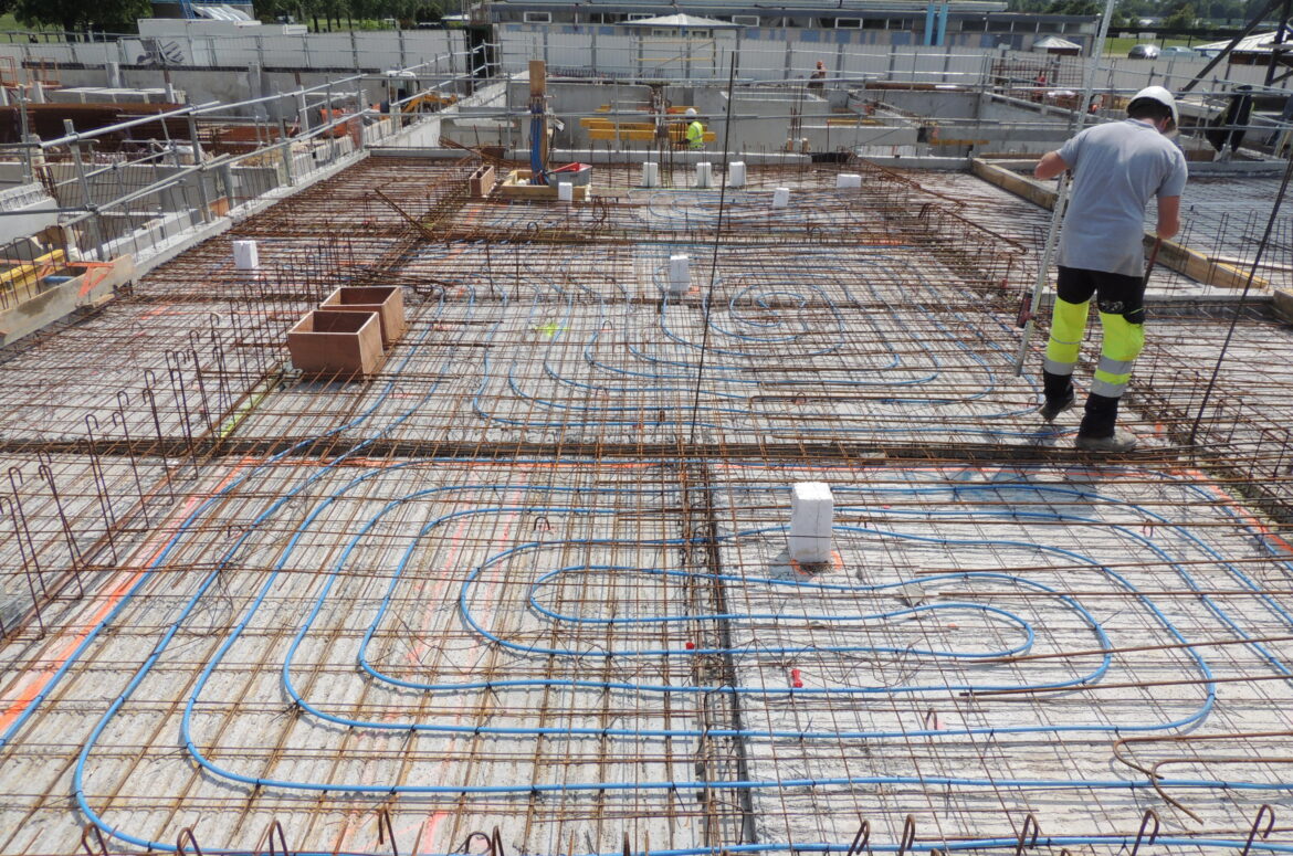 RÉHABILITATION ET EXTENSION DE LA PISCINE DU PINSAN A EYSINES – 1500 M² DE PLANCHER CHAUFFANT EN DALLE SUR PRÉDALLE