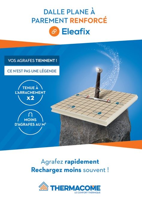 DALLE PLANE A PAREMENT RENFORCÉ ELEAFIX ! Moins d’agrafes au m² Tenue à l’arrachement des agrafes doublée Meilleur maintien du tube dans les courbes Gain de temps de pose Tenue mécanique de la dalle améliorée PROCHAINEMENT !