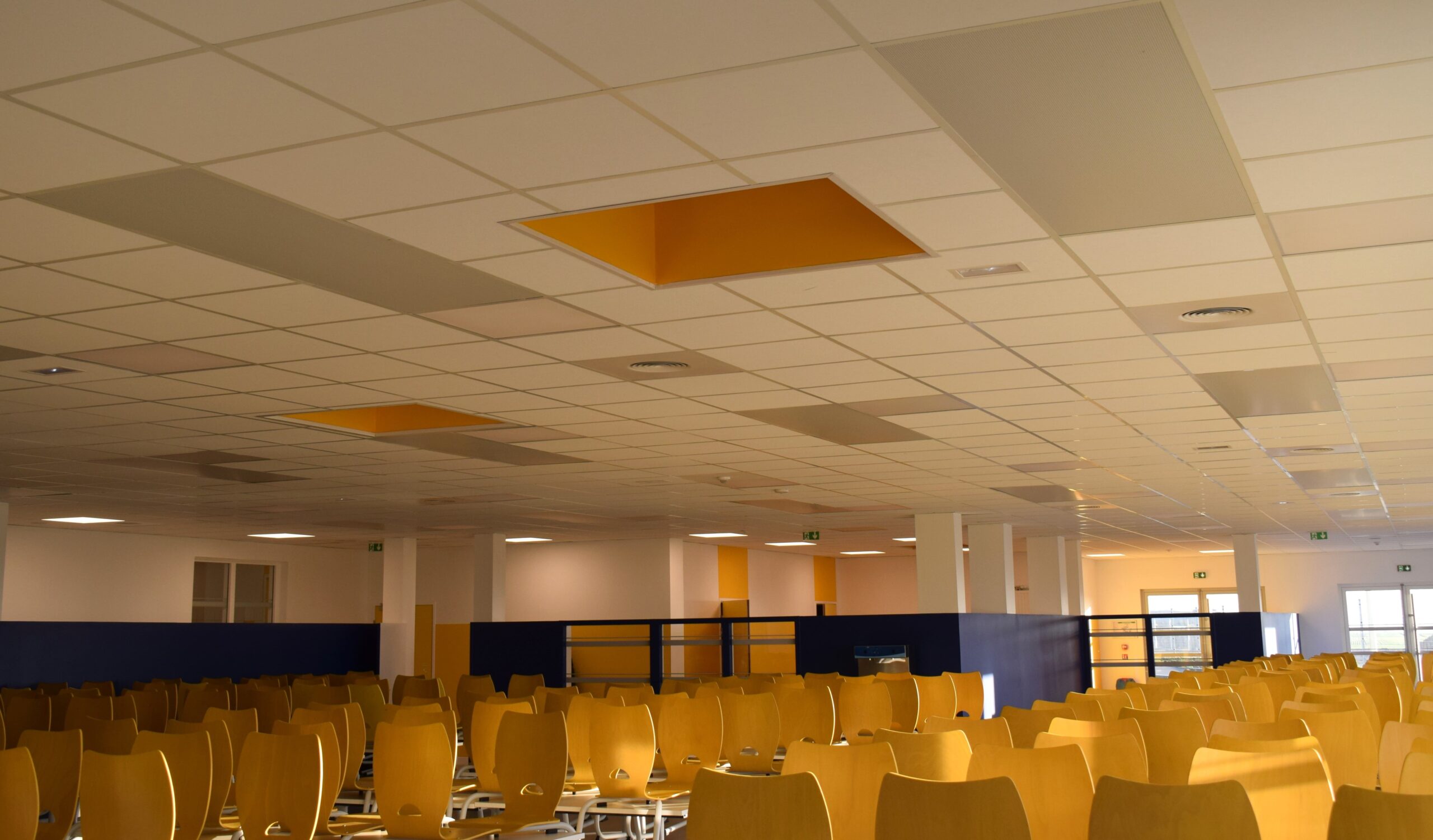 Au collège de Charny , les salles de classes, la bibliothèque, le réfectoire, les bureaux et salles de réunion sont équipés de panneaux rayonnants métalliques ACTIsteel modèle A perforés pour assurer le chauffage de l’établissement.