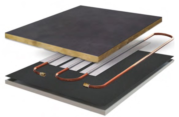 Les panneaux rayonnants métalliques sont équipés d’échangeur de chaleur hydraulique constitués d’excellents conducteurs thermiques (cuivre et aluminium).