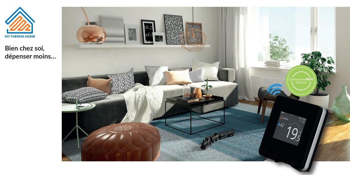 Le thermostat d’ambiance connecté et son appli dédiée MY THERMA vous assure confort et économies sur votre installation de chauffage et rafraîchissement hydraulique, chauffage électrique ou climatisation !