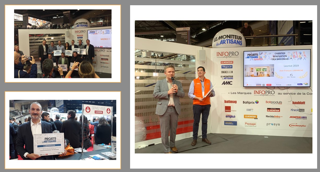 Remise des Trophées Projets d’artisans 2019 sur le stand du Moniteur des Artisans le 07 novembre à BATIMAT.